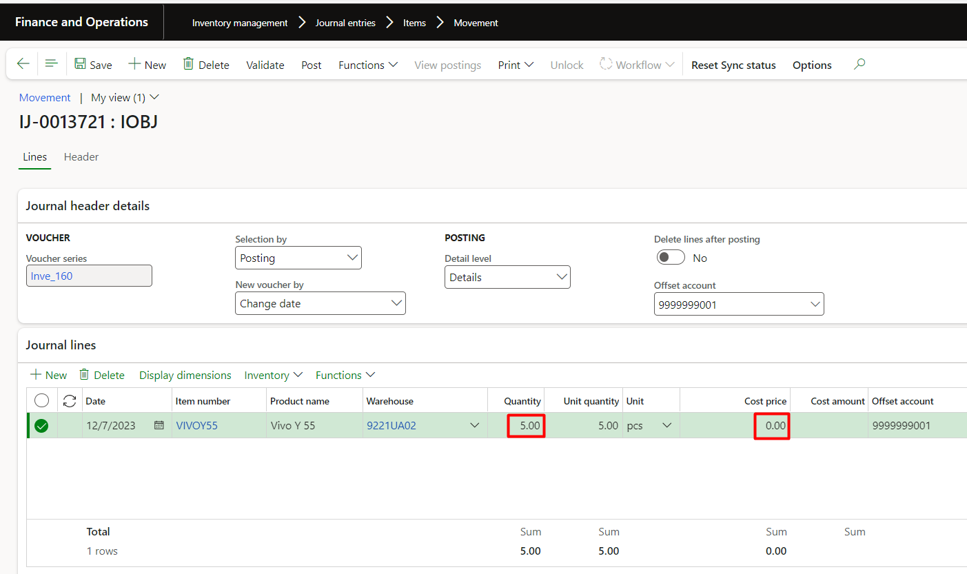 Now, let’s test what happens when we use movement journals for the same item.