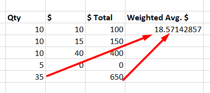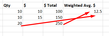 - So the available items cost should be $450, and the available quantity is 25. Therefore, the new recalculated weighted average is $450/25= $22