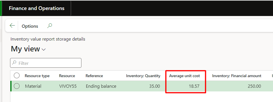 Each time you receive inventory, D365 automatically adjusts the item’s running cost.