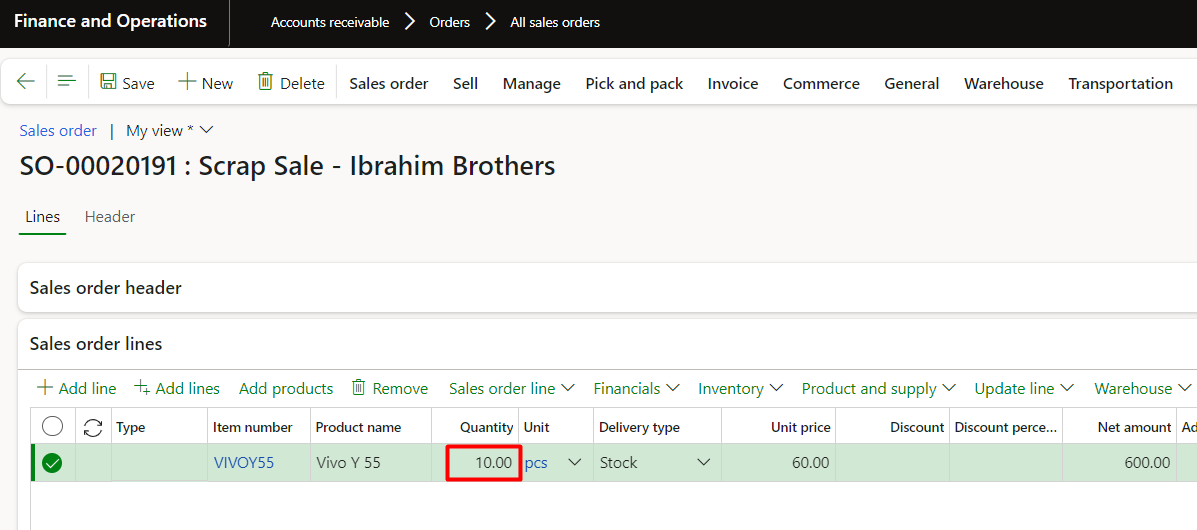 - Sales orders
