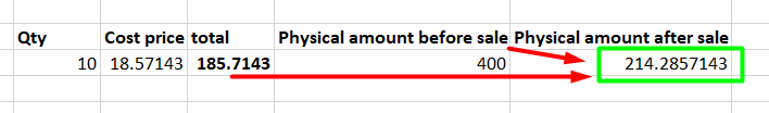 Cost price has no change, but the physical cost reduced with weighted average rate as mentioned above