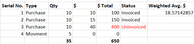 - As we see above, the system temporarily calculated $10 running average cost (due to one purchase order not being invoiced and the movement journal being FOC).
