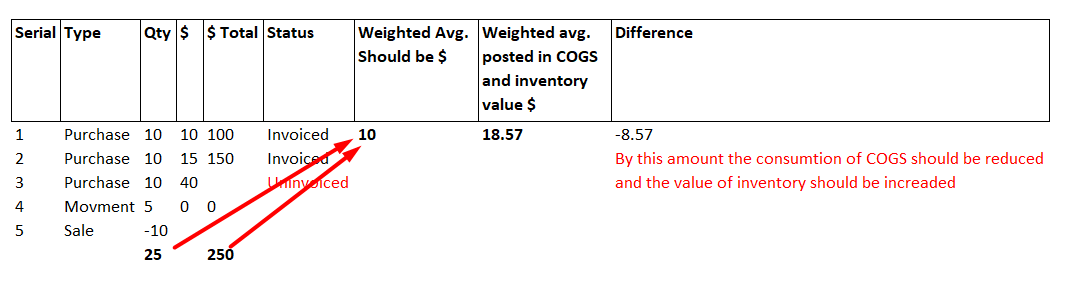 Receipts that have not yet been invoiced can temporarily skew the weighted average cost. Once invoicing is complete, recalculation helps normalize the valuation.