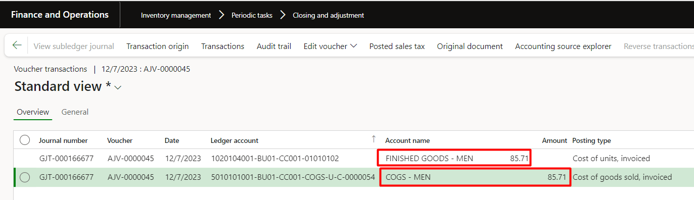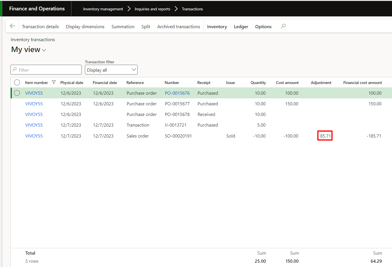 We can also verify the adjustment amount in inventory transactions: