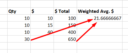 It will show the exact weighted average value which is shown on the item:
