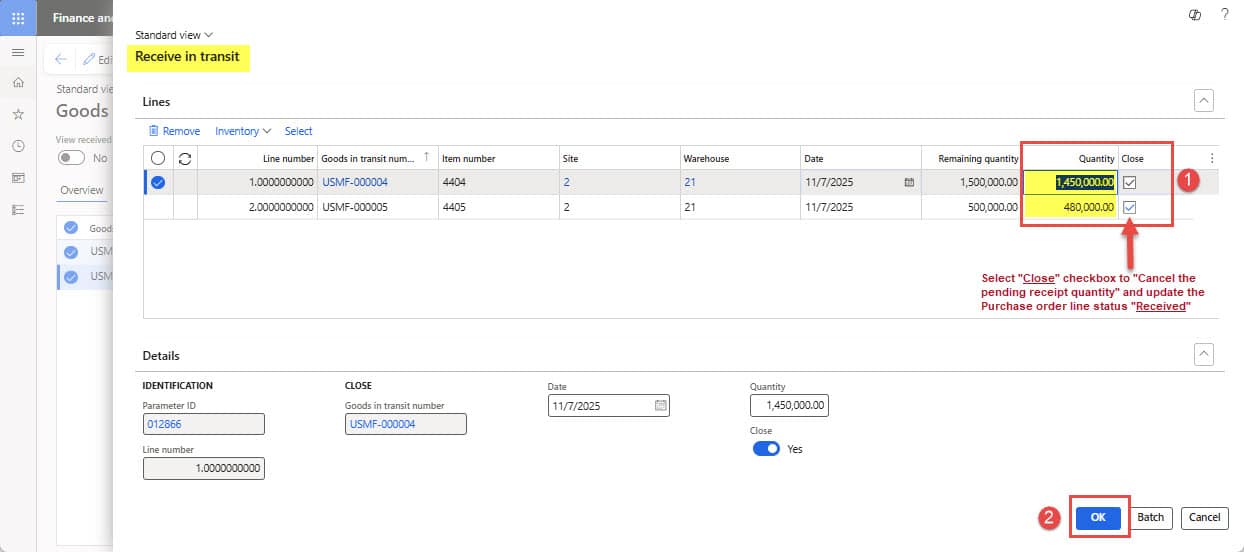 For simplicity and clarity, we have intentionally excluded repetitive details and focused only on the GIT process steps in the Landed cost, presenting only those steps that differ from the non-GIT inbound purchase order receipt process. Check out the blog titled “Part 1: Landed cost management in D365FO” for detailed steps in the non-GIT inbound purchase order process.